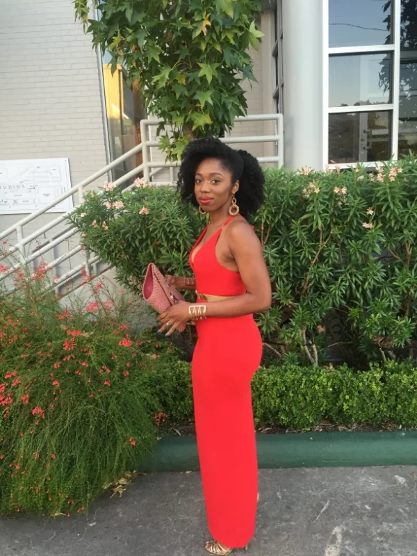 With her expert insight, I whittled my choices down to 4 dresses. A few days later, my choices arrived! Brimming with excitement, I tried on all 4 and settled on 2 choices. Predictably (I guess) I found myself leaning towards my default wedding look - colourful bodycon midi dress - but Enma convinced me to go for the red dress in the pics. I was still unsure, then realised I could elevate the dress with accessories. Naturally I thought to wear a statement necklace to cover my ta-tas! lol...but was advised by Enma to go for bold earrings, a bold lip with a bare chest. With the help of a pretty gold belt I bought from Topshop ages ago (but never wore) and a Victoria Secret v-neck plunge bra....it worked! If i do say so myself. Ahh...the joys of having a stylista on speed dial ;)