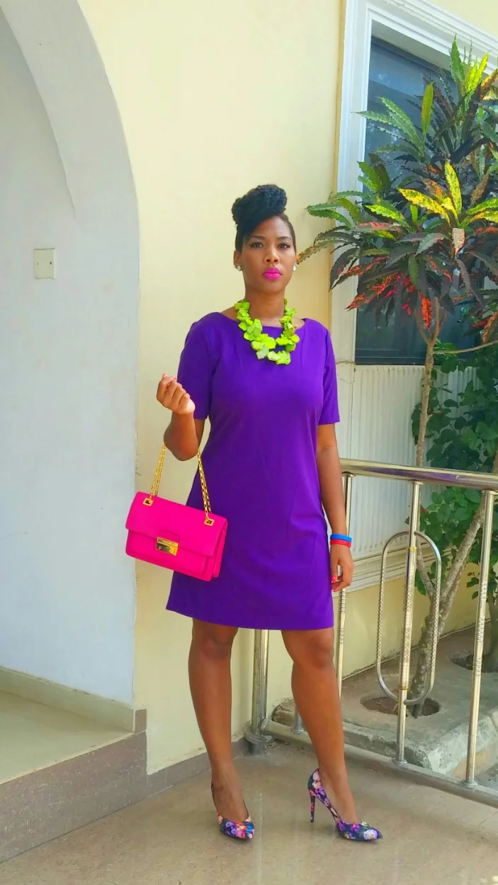 This simple purple dress was instantly transformed by my green sea shell necklace. A small fact about this necklace: I got it 3 years ago from TJ Maxx but returned iy and I honestly can't say I know why I did so. However, for years this necklace continued to haunt me each time I walked into a TJ Maxx store. The necklace refused to go away. In fact the more I saw it the happier I was that I didn't get it. I figured if they've had it all these years then it must be a hit with customers meaning the whole word owns it and if that's the case it's lost its alluring nature as far as I'm concerned. It didn't even occur to me that maybe they still had it because no one was buying it! Who knows. I do know that last year I walked into a TJ Maxx in Seattle to find this necklace on sale. At my friends urging, I purchased it again two years later. I almost returned it again but didn't. I really don't get me sometimes because I absolutely love this necklace and always have.