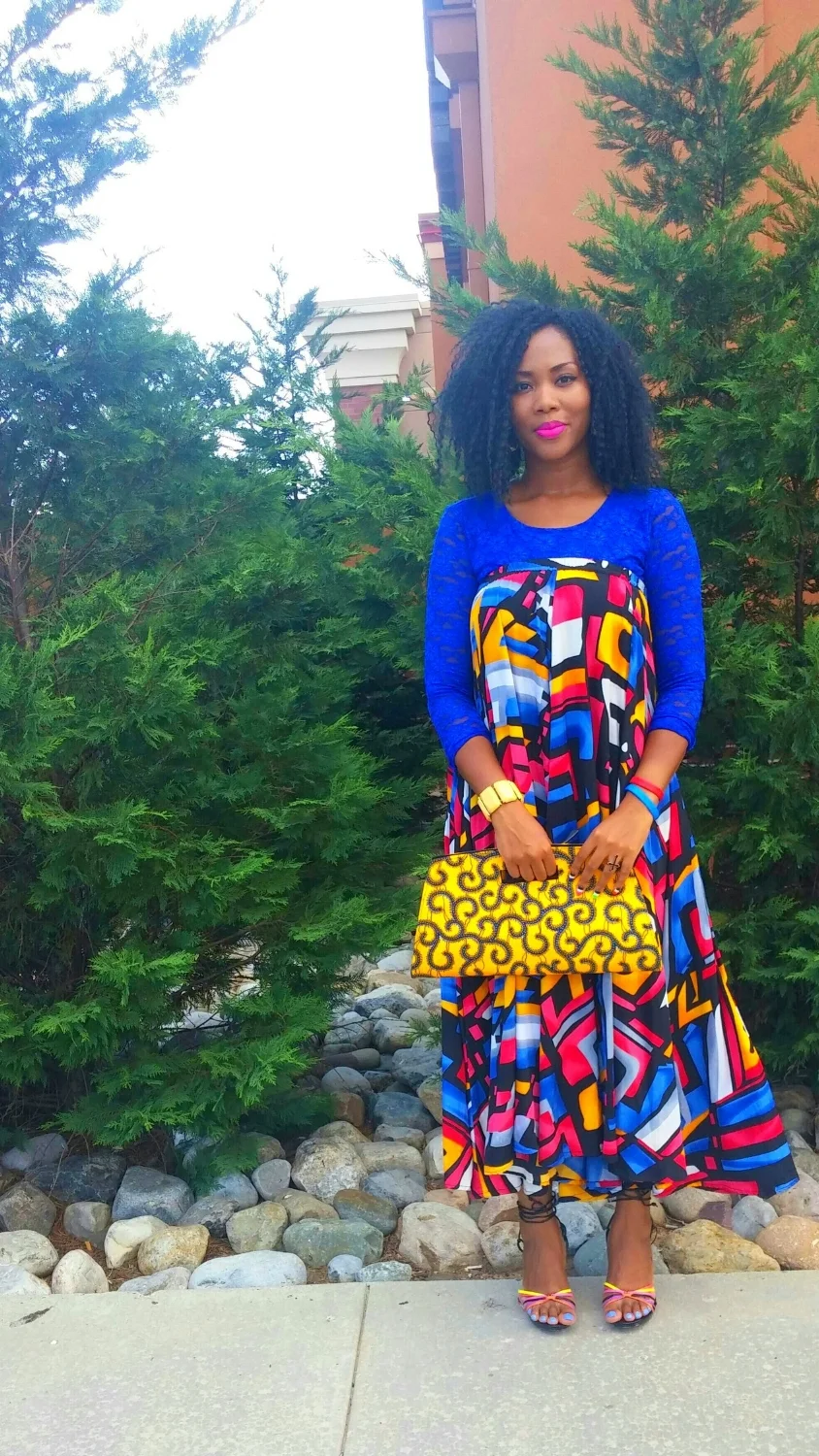 "In a previous post I showed off an ankara piece that I designed to be worn multiple ways (see pic below) - a long skirt and a tube/strapless three quarter length dress. I have toyed with the idea of wearing a top or shirt with the ankara tube dress for a while now. I decided to try out my idea with this skirt which I also wore in a previous post. I was motivated when I saw this picture of my fashionable and famously generous friend, Noma, wearing the gorgeous dress in the pictures below. Her dress was the way I imagined a top tucked into a strapless dress would look. So I found a top to match my skirt and voila!
