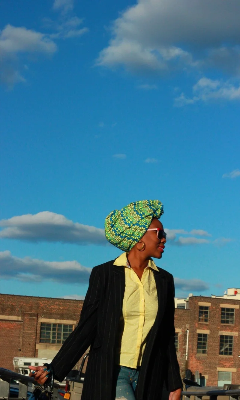 "Every time I design an Ankara piece, I try to make sure I have scraps of fabric left to use as a turban, scarf or head wrap. It doesn't always work out that way since it depends on how much fabric is needed for my design. Why do I care so much about saving scraps? Because I know that every extra piece of fabric would make a huge difference with whatever I choose to wear it with.