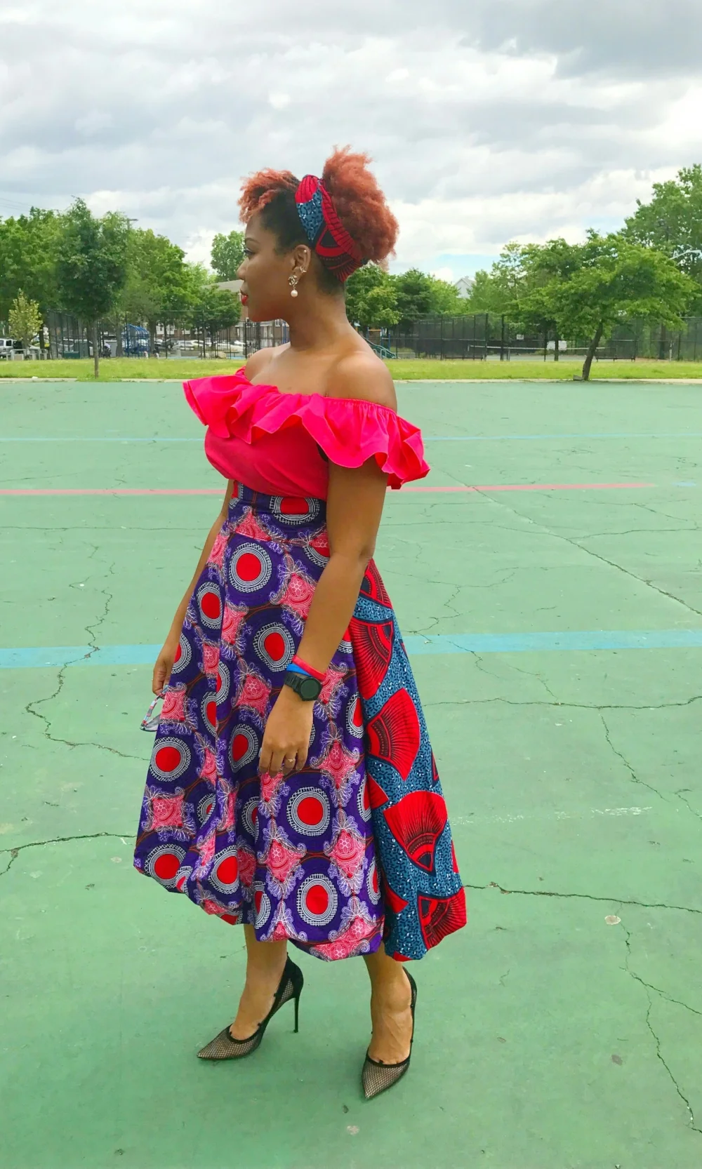 The great thing about this skirt is its versatility. It can be worn in a way that features the two ankara prints, side by side (one on the left and the other on the right) or front and back like I'm wearing it in today's post.