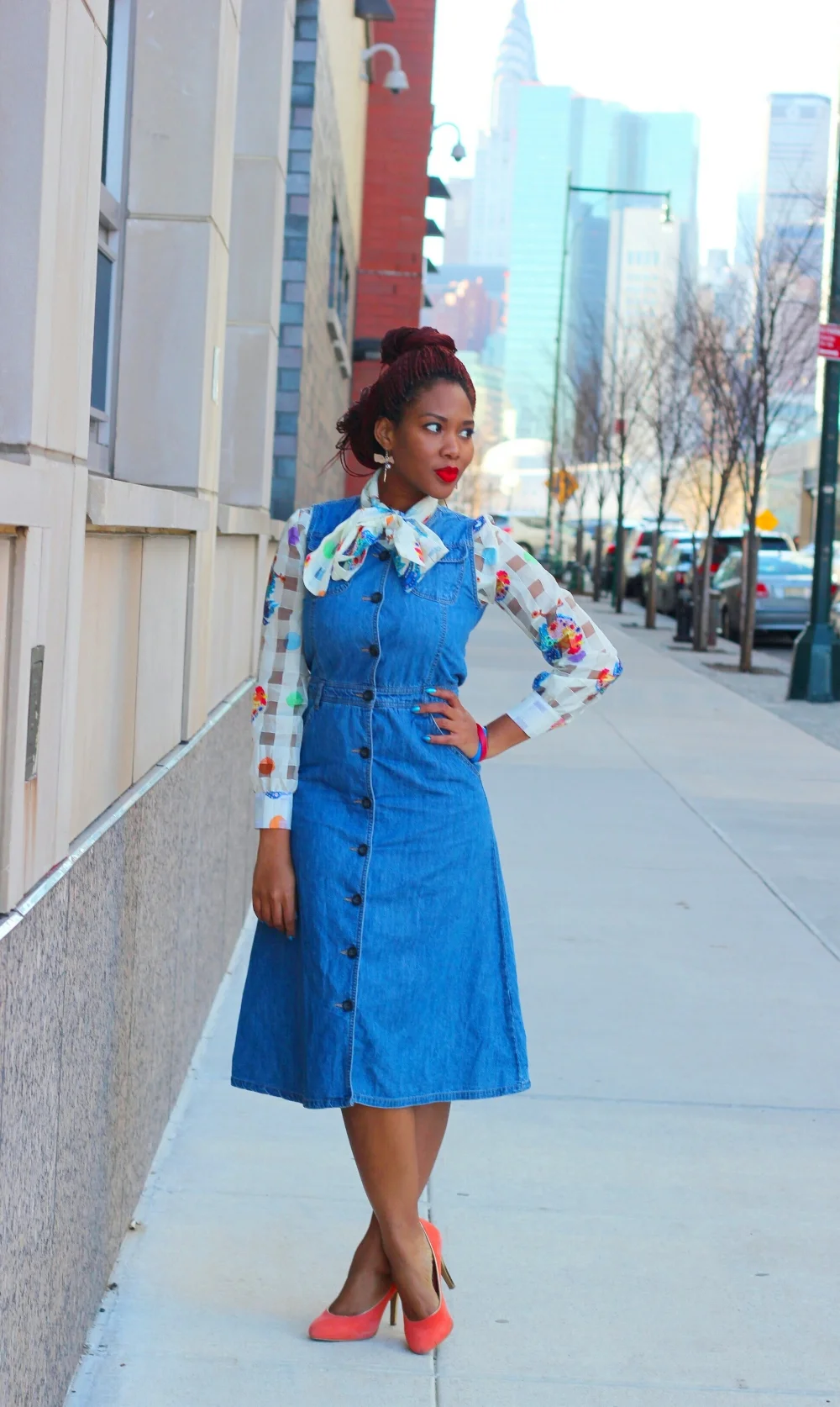 There's also a third way to wear this dress. I can wear it like it was intended - as a sleeveless denim dress (with no shirt underneath), which is a pretty great look too.